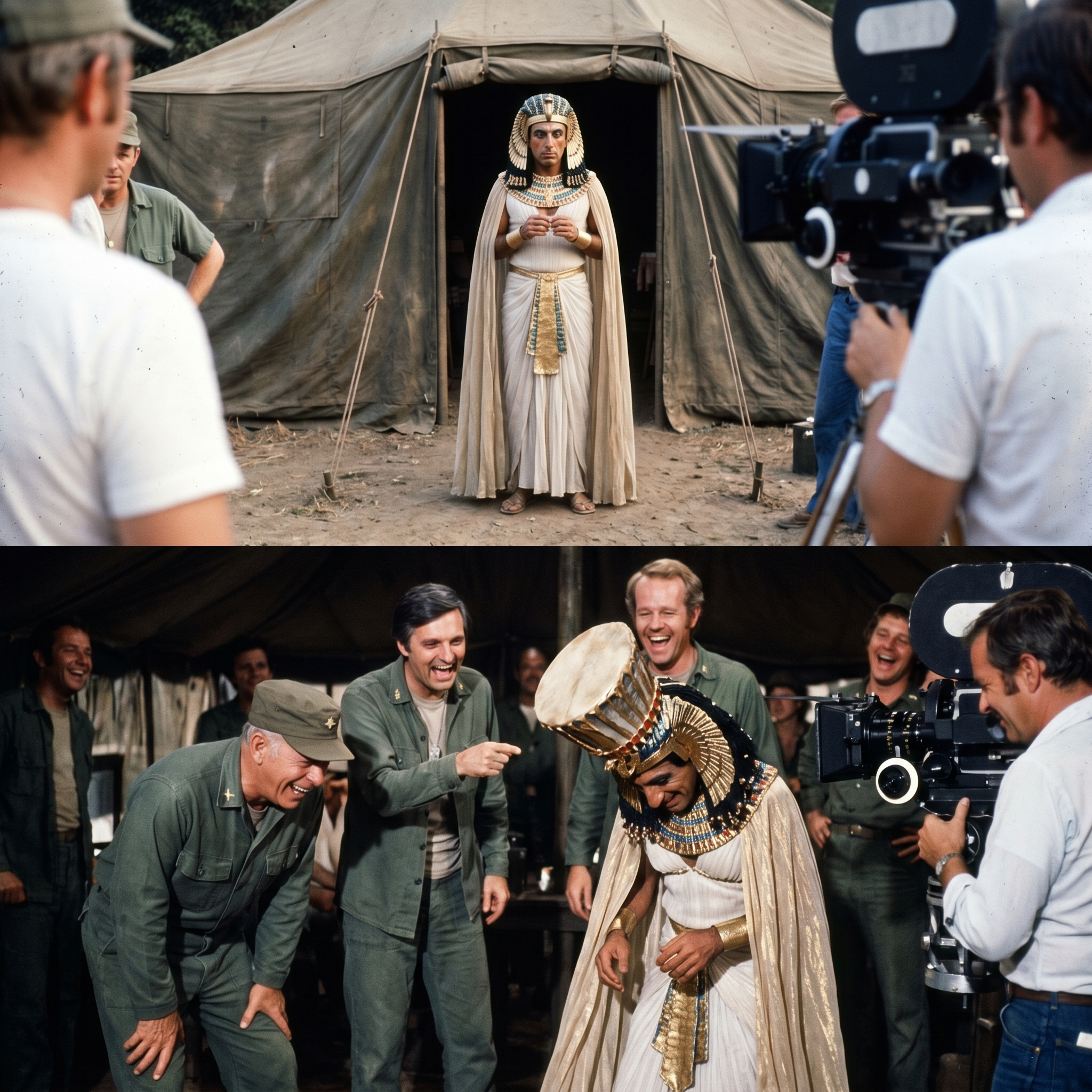 The joke was always in the normalcy of it—Klinger acting like he was just another soldier in a standard uniform while dressed like the Queen of the Nile.