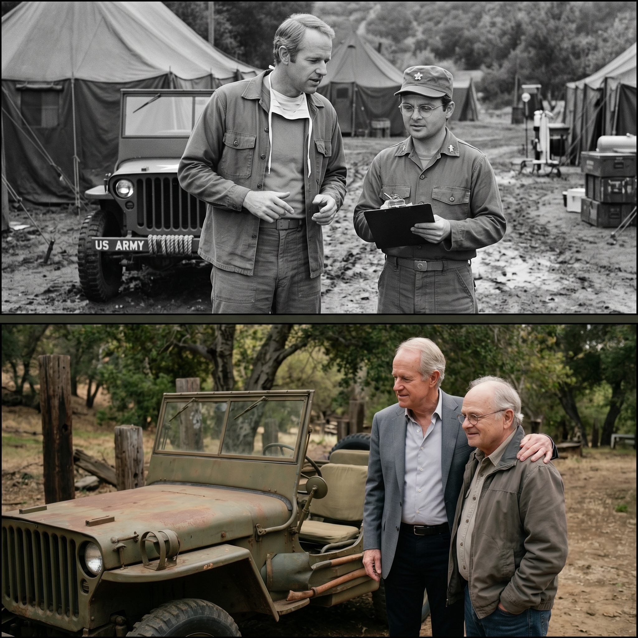 But as Mike Farrell and Gary Burghoff stood near the rusted frame of an old military ambulance, the silence suddenly felt incredibly heavy.