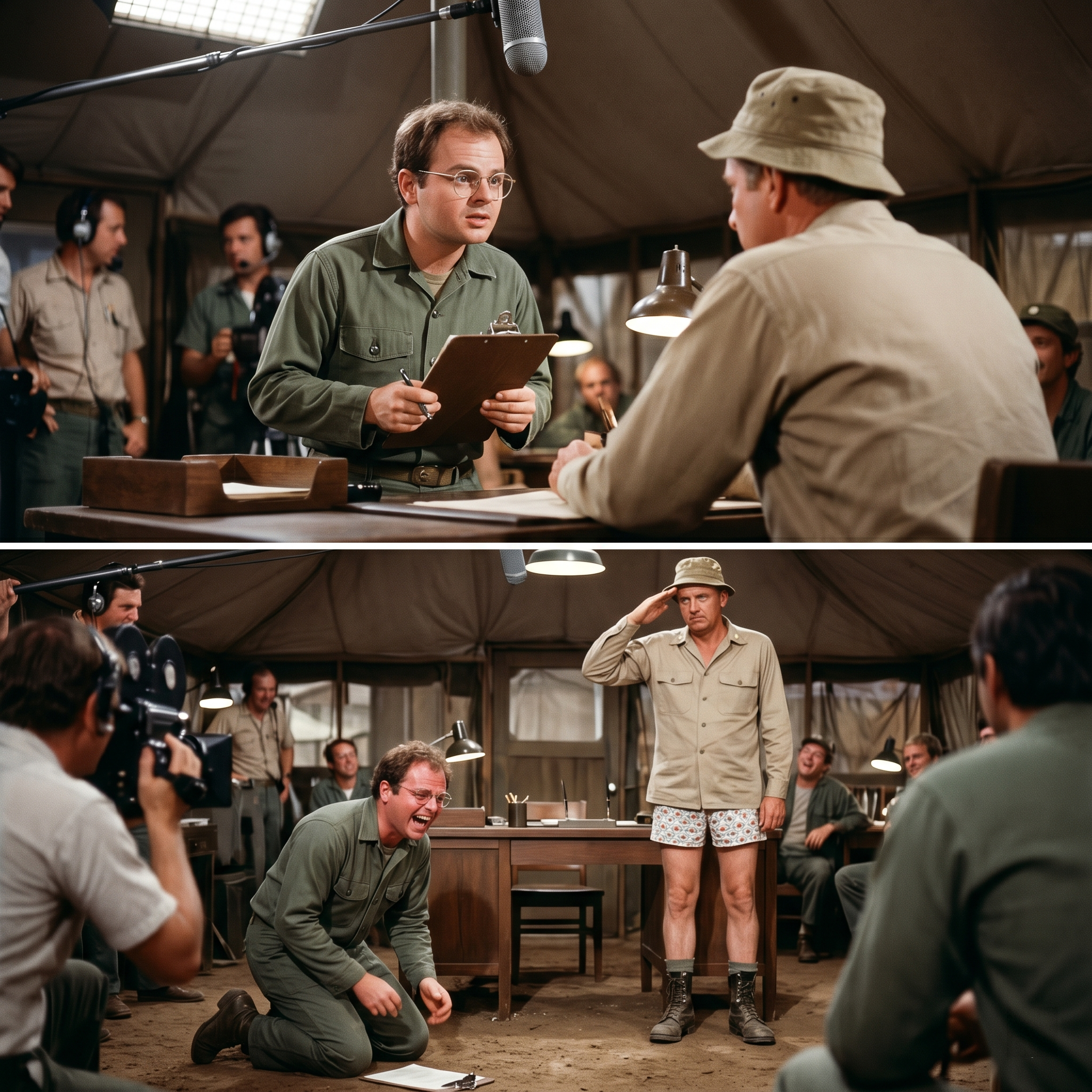 When the director walked around the wooden desk and saw McLean standing there in his underwear, saluting perfectly, the entire set absolutely exploded.