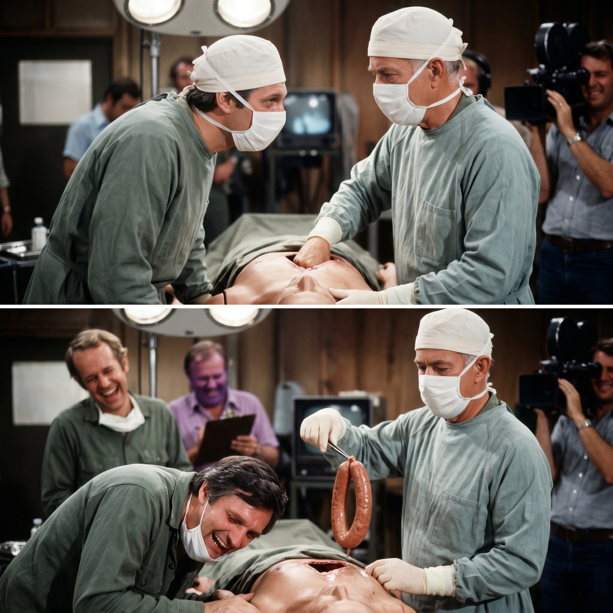 I was deep in the moment, feeling the weight of the scene, and Harry was supposed to be reaching into the “chest” of the patient to clamp an artery.