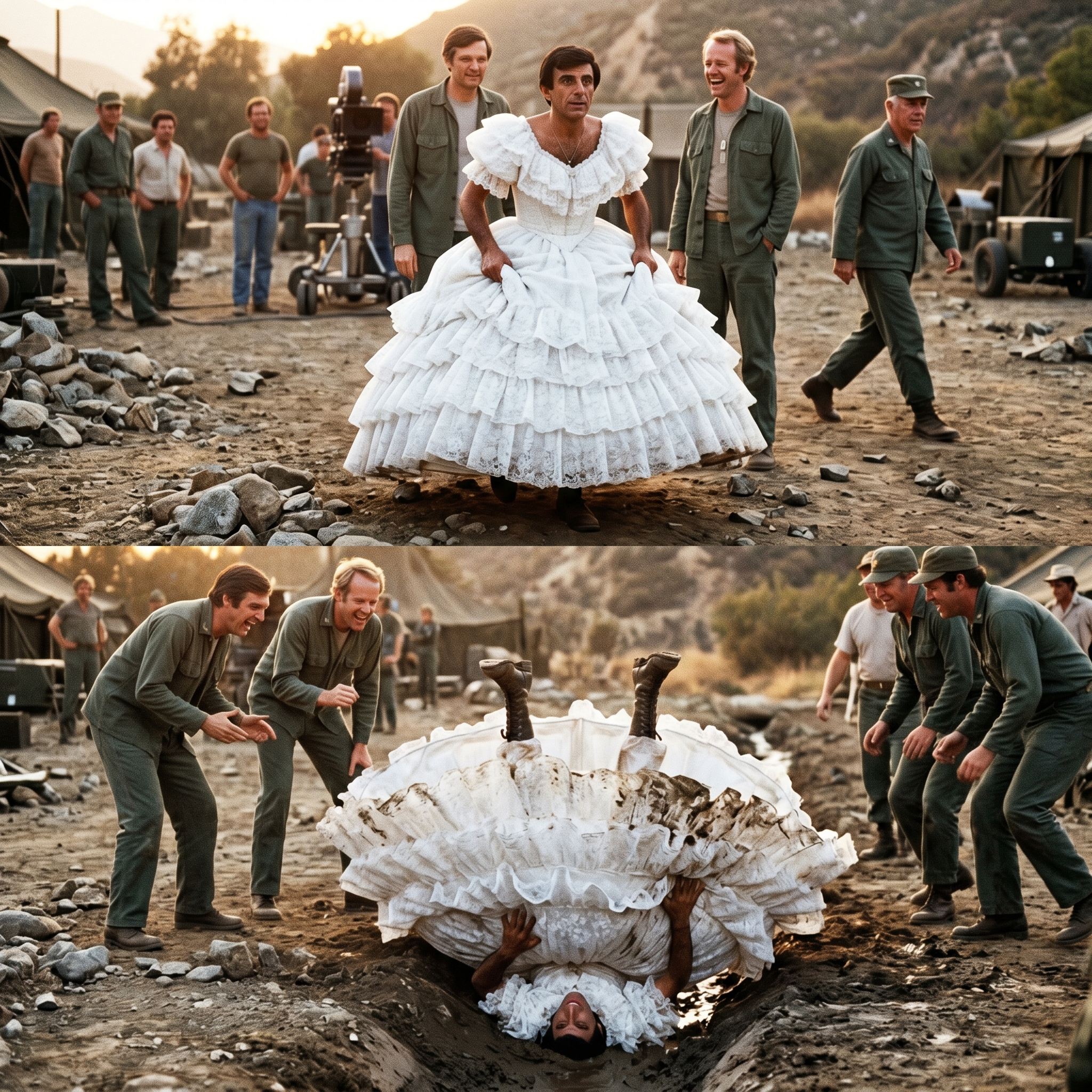 Mike Farrell sat on the edge of a director’s chair, watching David Ogden Stiers pace near the piano that had been dragged into the dirt of the 4077th.