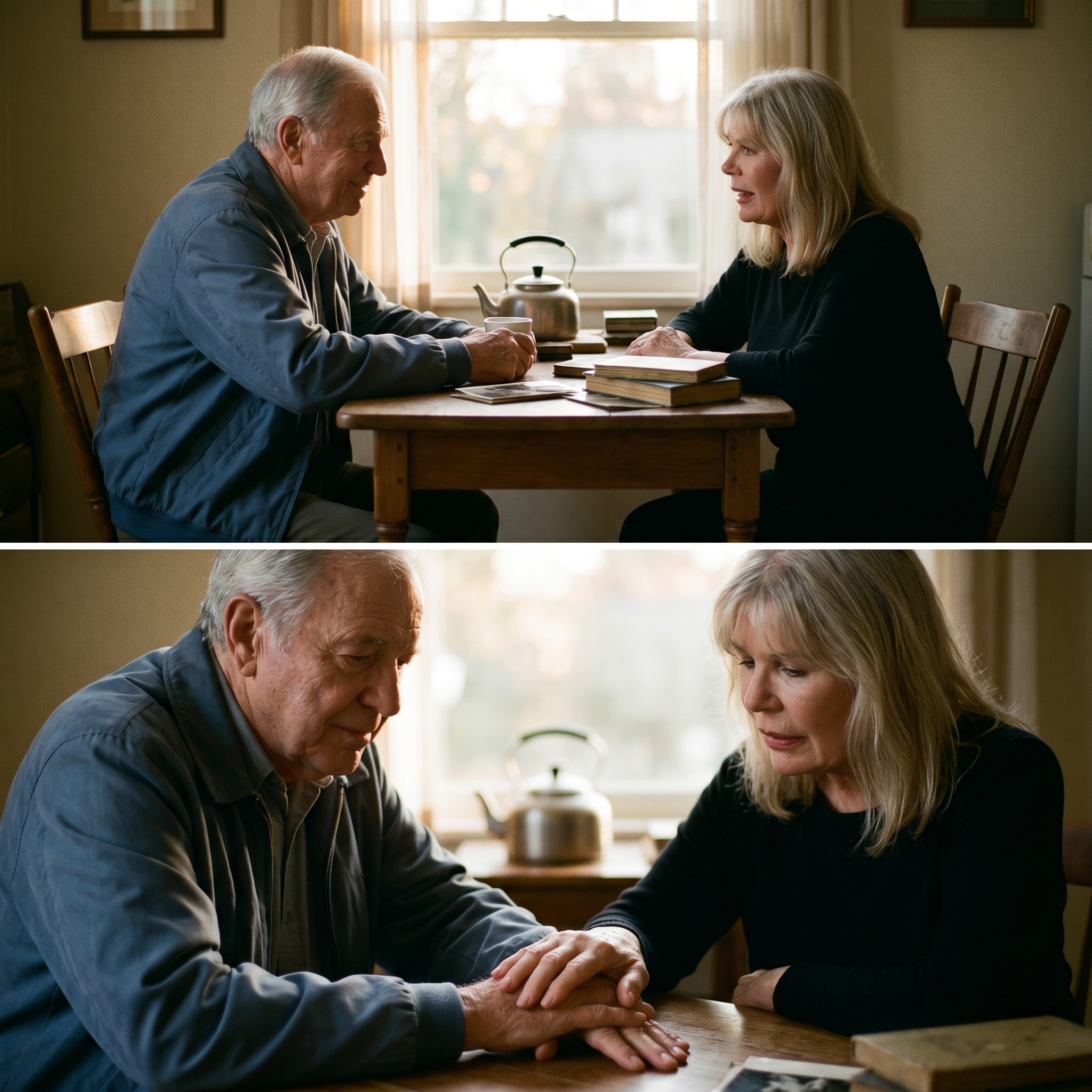 Loretta sat across from Bill, her eyes tracing the lines on a face she had known for nearly half a century.