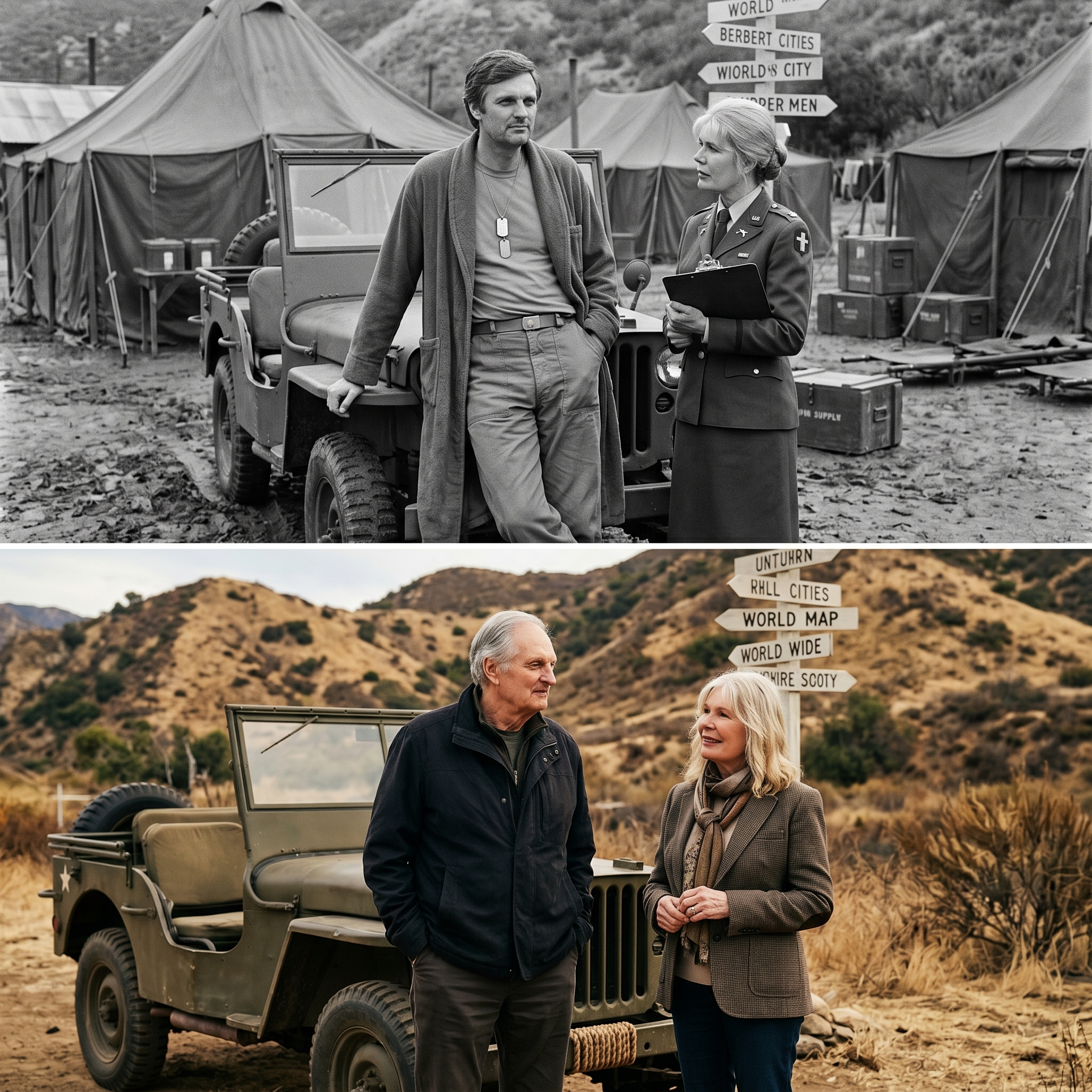 Next to her, Jamie Farr stood with his hands on his hips, his silhouette unmistakable even after all this time.
