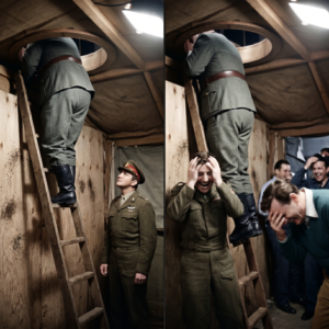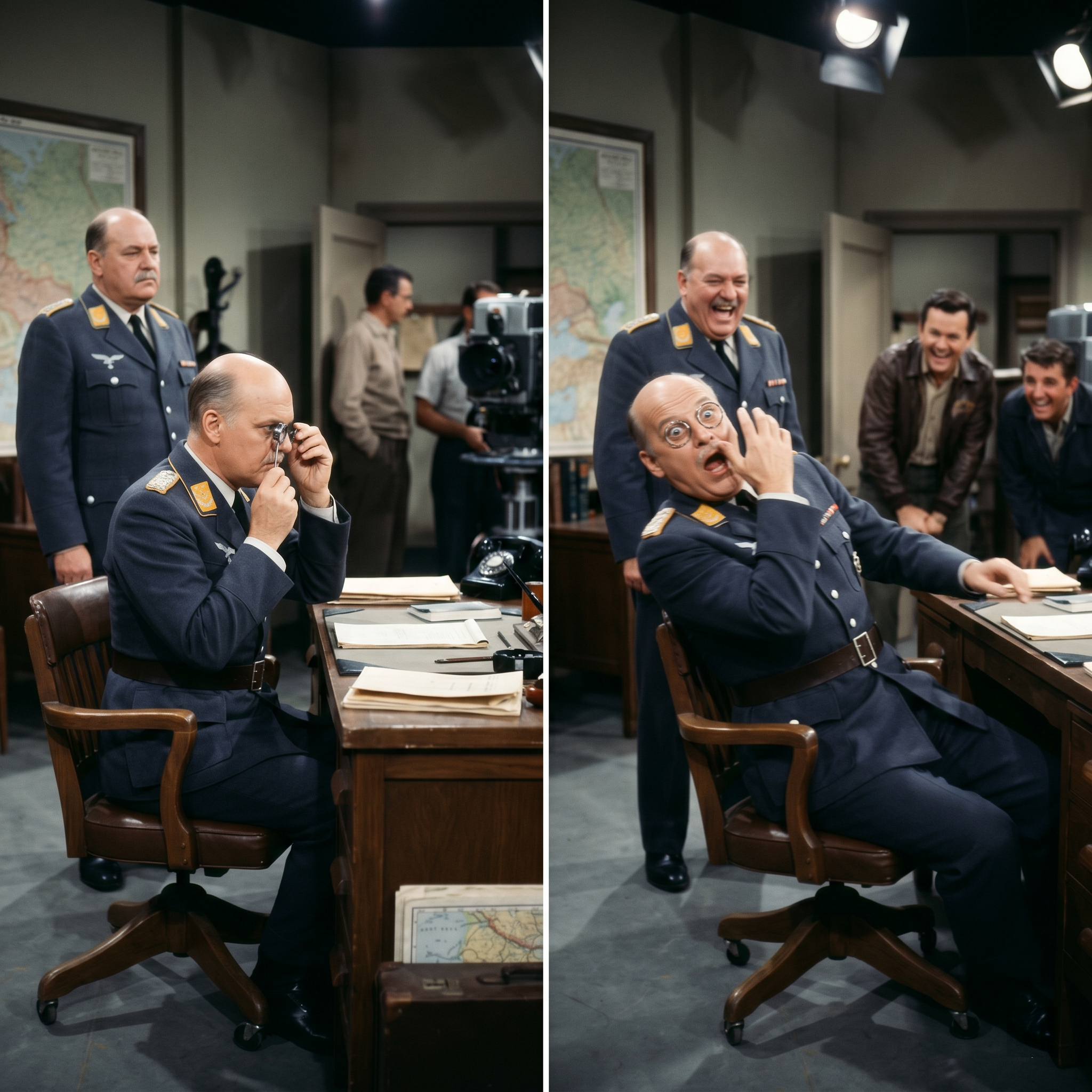 John Banner picked up the lens from the desk, held it up to his own eye, and turned it toward the audience of extras. He let out that classic, booming Schultz belly laugh and shouted, “I see… EVERYTHING! I see what Hogan is doing in the tunnel! I see what the caterer is having for dinner tonight!”