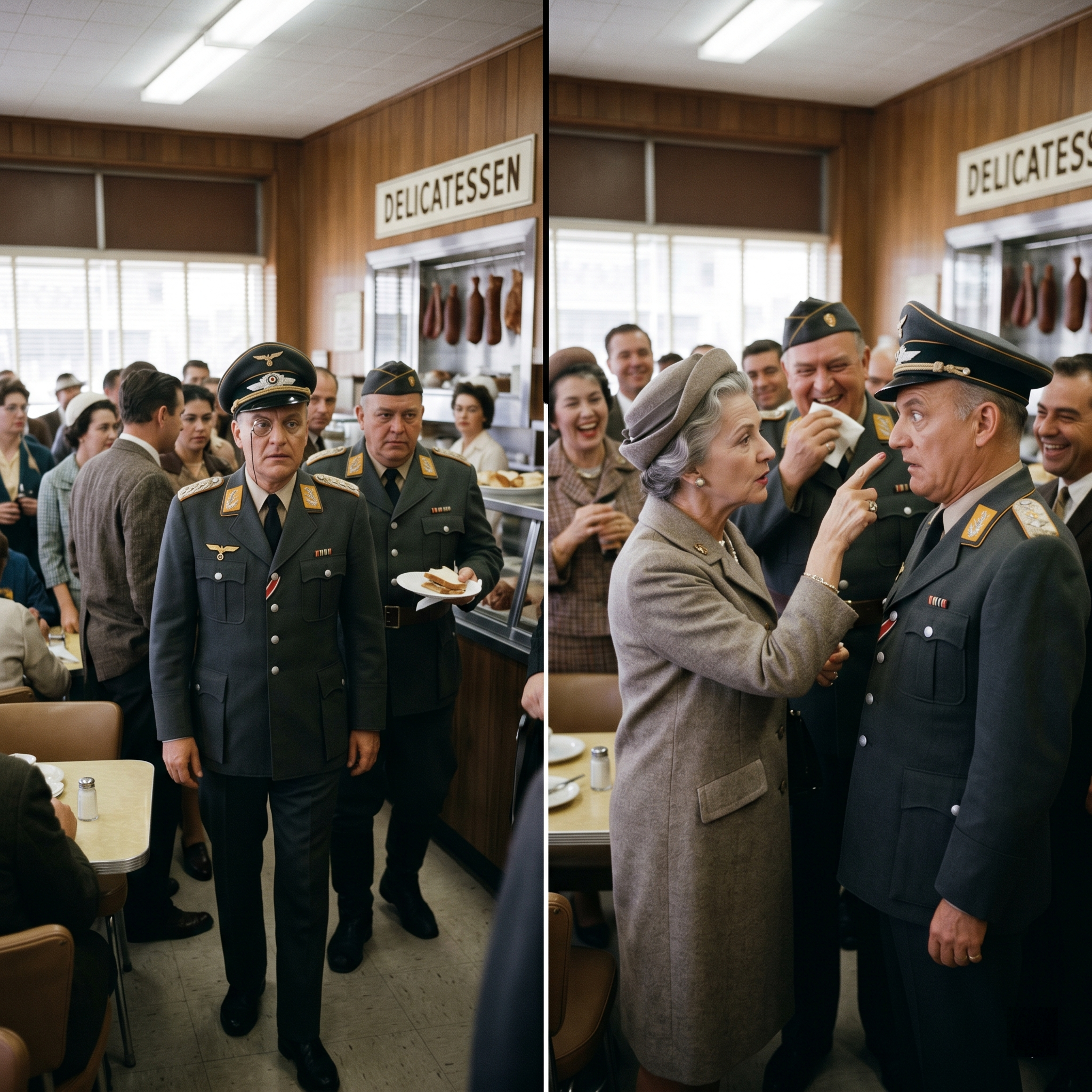 Imagine it. A bustling delicatessen in Los Angeles, filled with families, elderly couples, and people who had very vivid, personal memories of why those uniforms were the most hated symbols on earth.