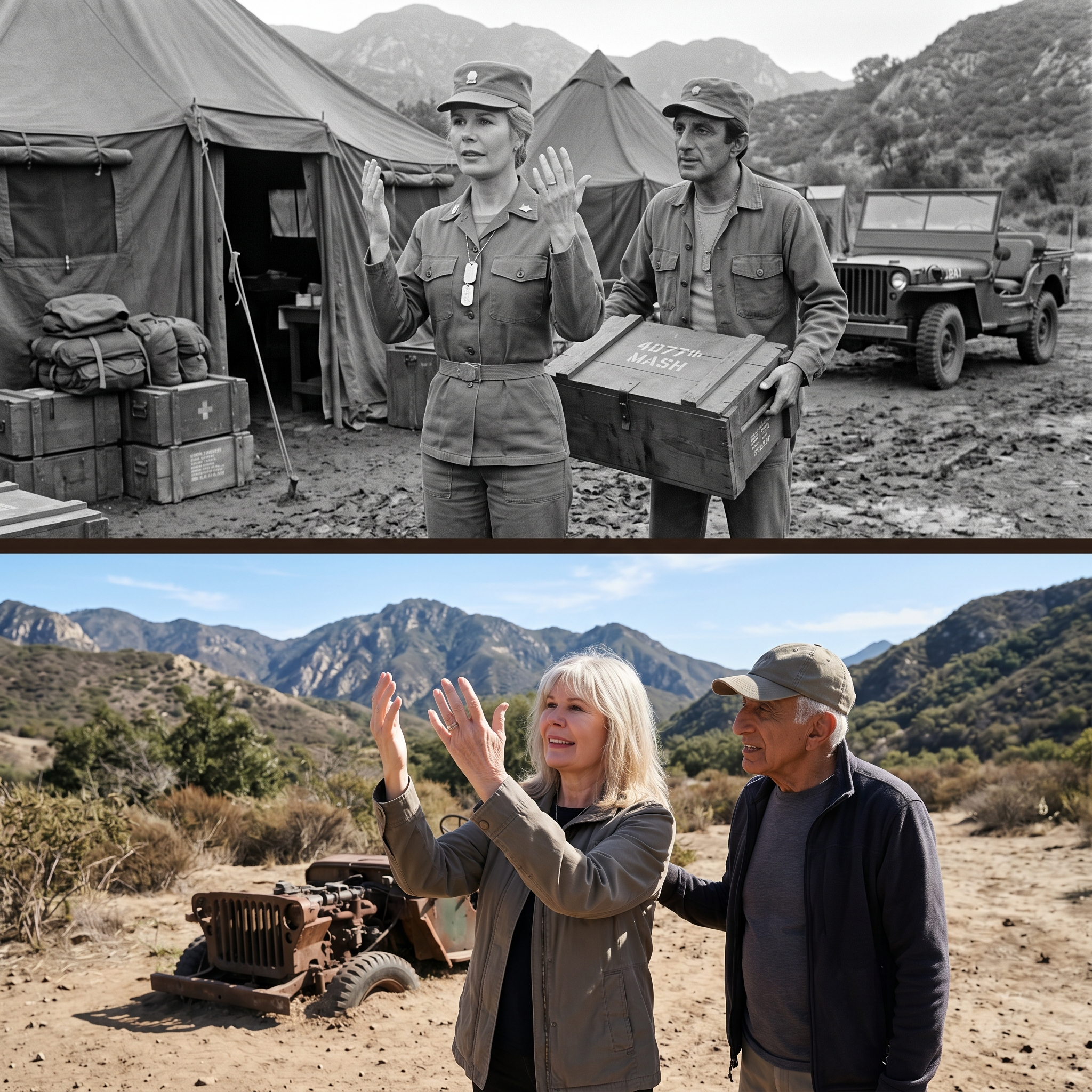 Beside him, Loretta Swit went perfectly still, her head tilting slightly to the side as she scanned the horizon.