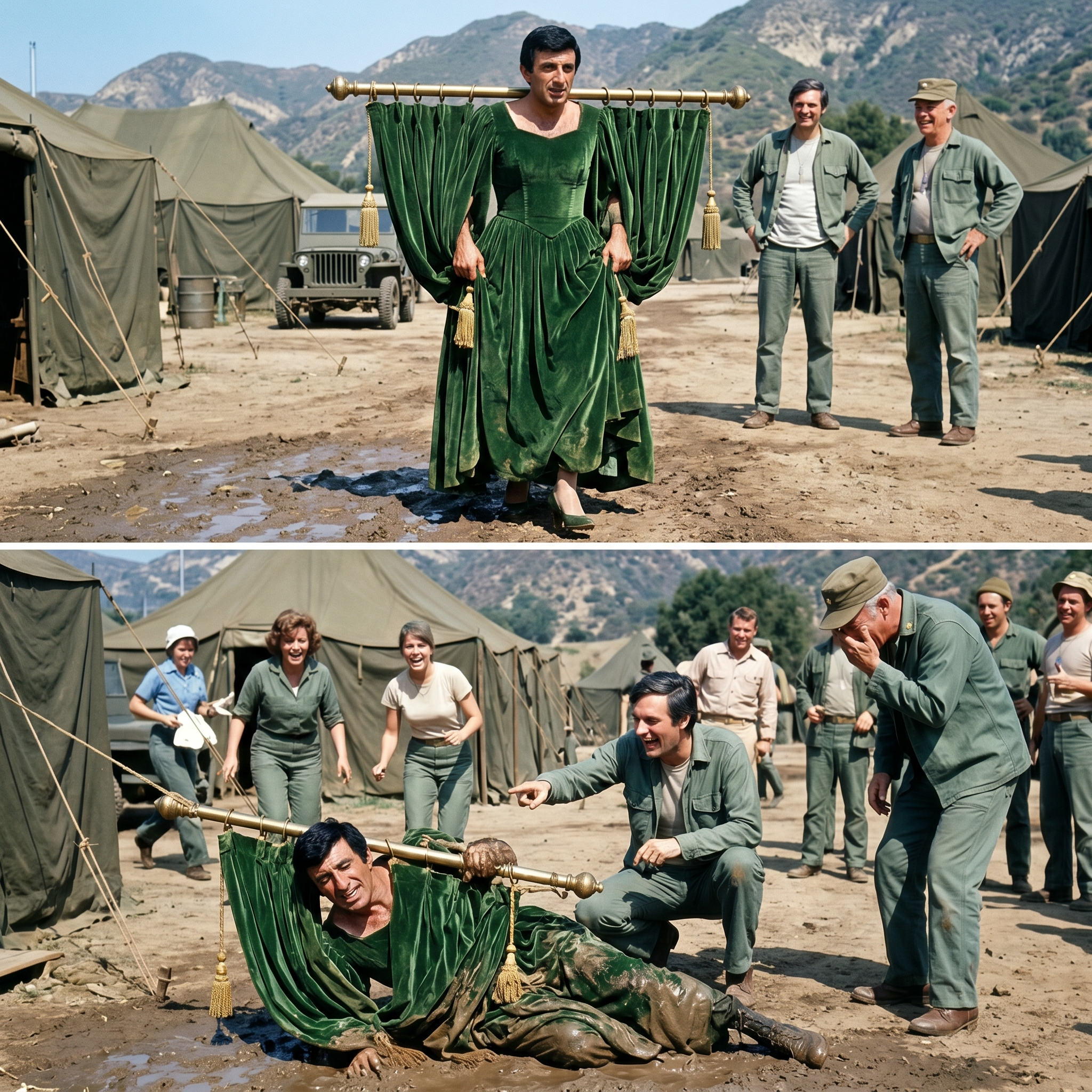 This particular day, we were doing a scene for an episode where Klinger really went all out. I’m talking about the famous tribute to Carol Burnett’s tribute to Gone with the Wind. The wardrobe department had outdone themselves. They built this massive, heavy, green velvet gown made entirely out of what looked like living room curtains, complete with the actual brass curtain rod still across the shoulders.