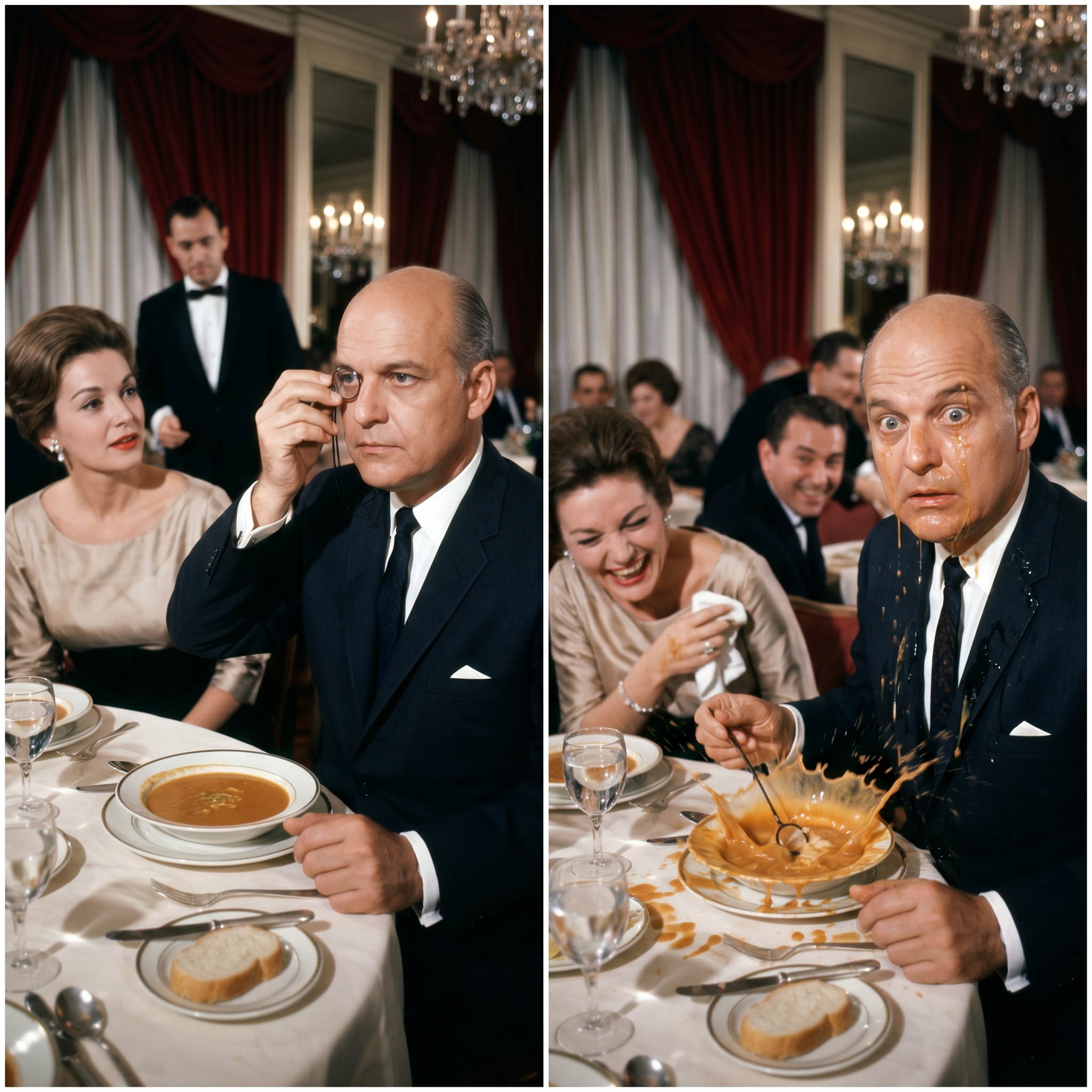 If a man in a monocle can’t even eat soup without a disaster, how powerful can he really be?