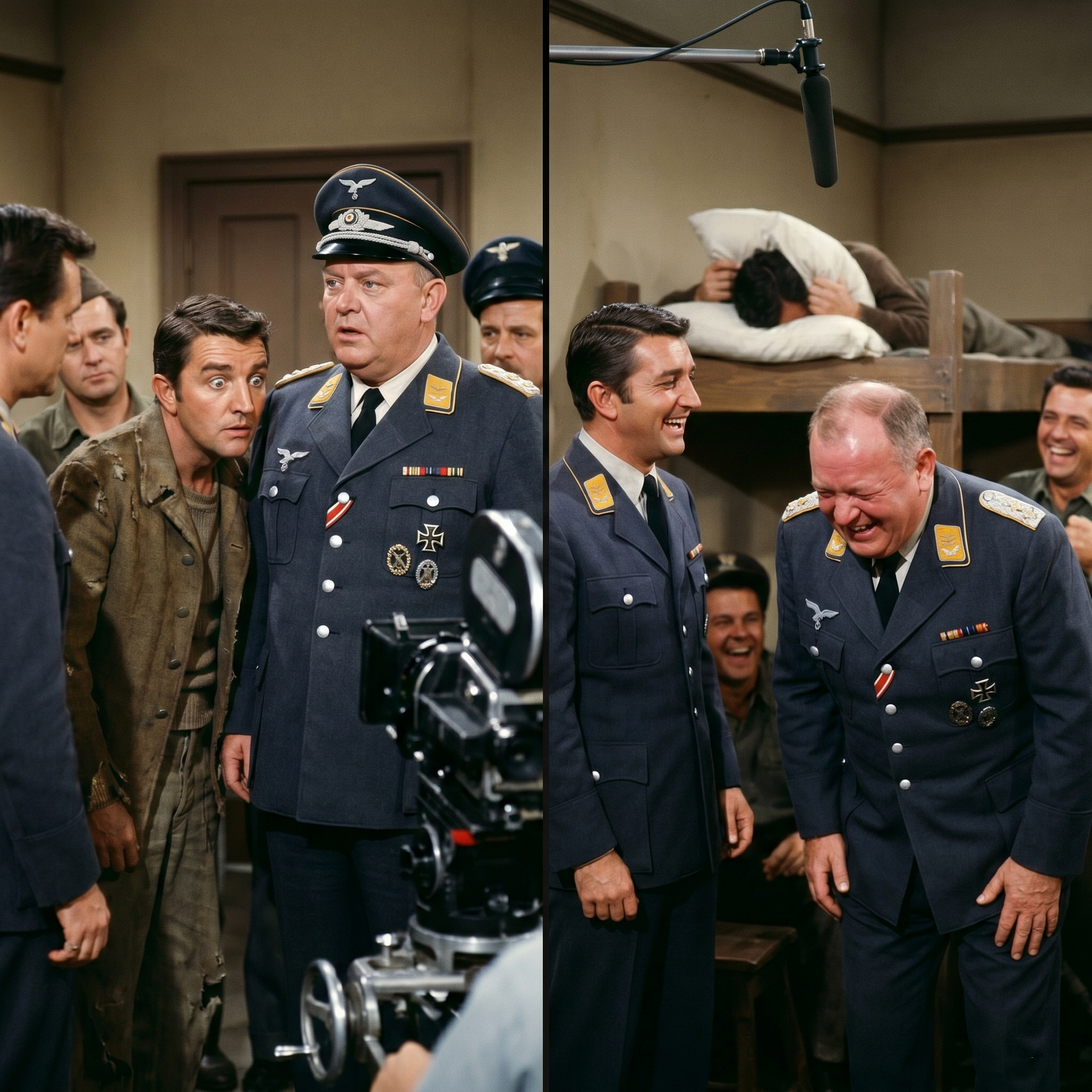 Bob Crane collapsed onto one of the bunks, burying his face in a pillow to stifle his screams of laughter. Robert Clary was doubled over, pointing at John’s shaking belly.