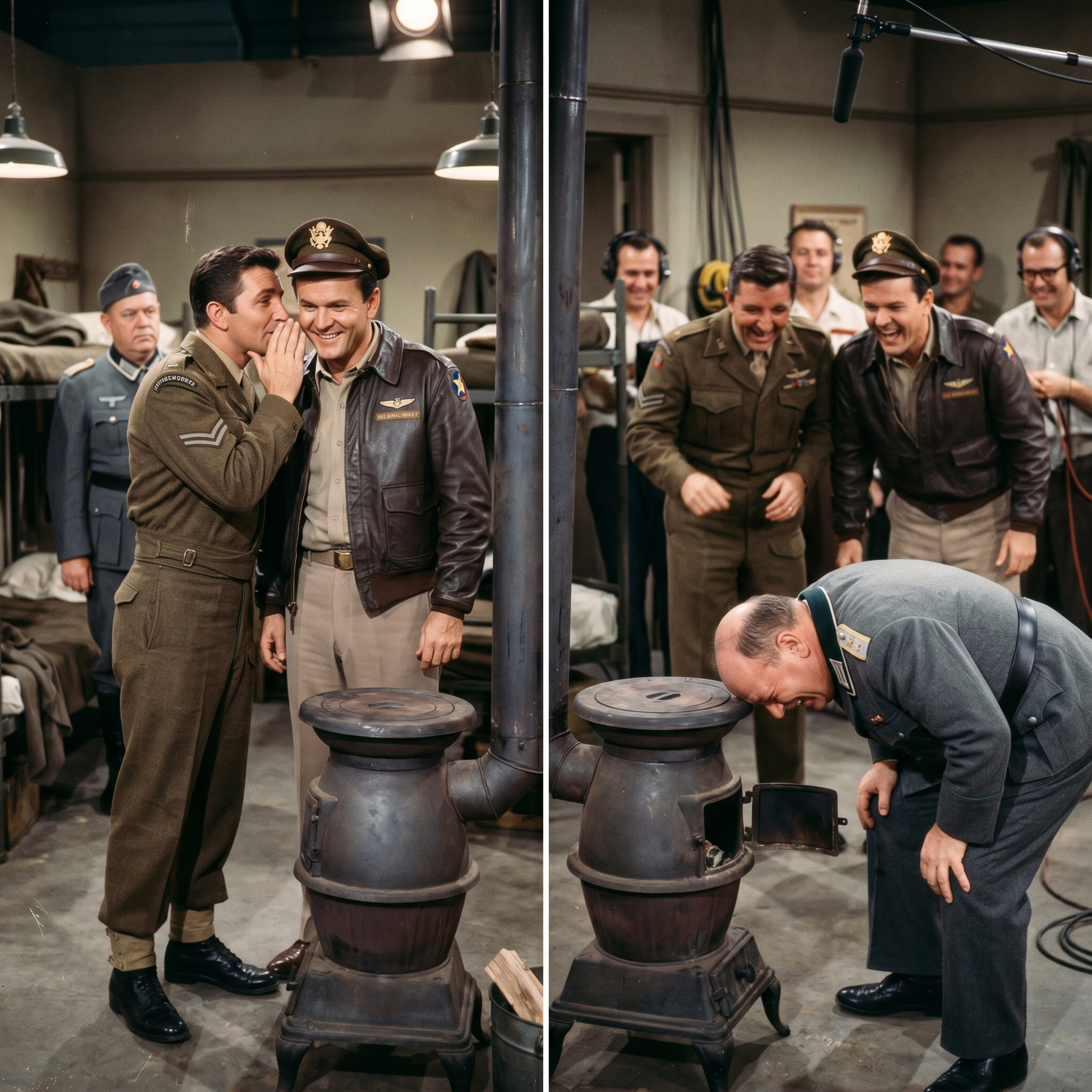 And then the director breaks. He starts howling. He is laughing so hard he has to grab onto the bunk bed next to John. Now the cameramen are laughing. The lighting guys are doubled over in the rafters. The entire production of Hogan’s Heroes has ground to a complete, hysterical halt because of a five-dollar prank and a makeup mirror.