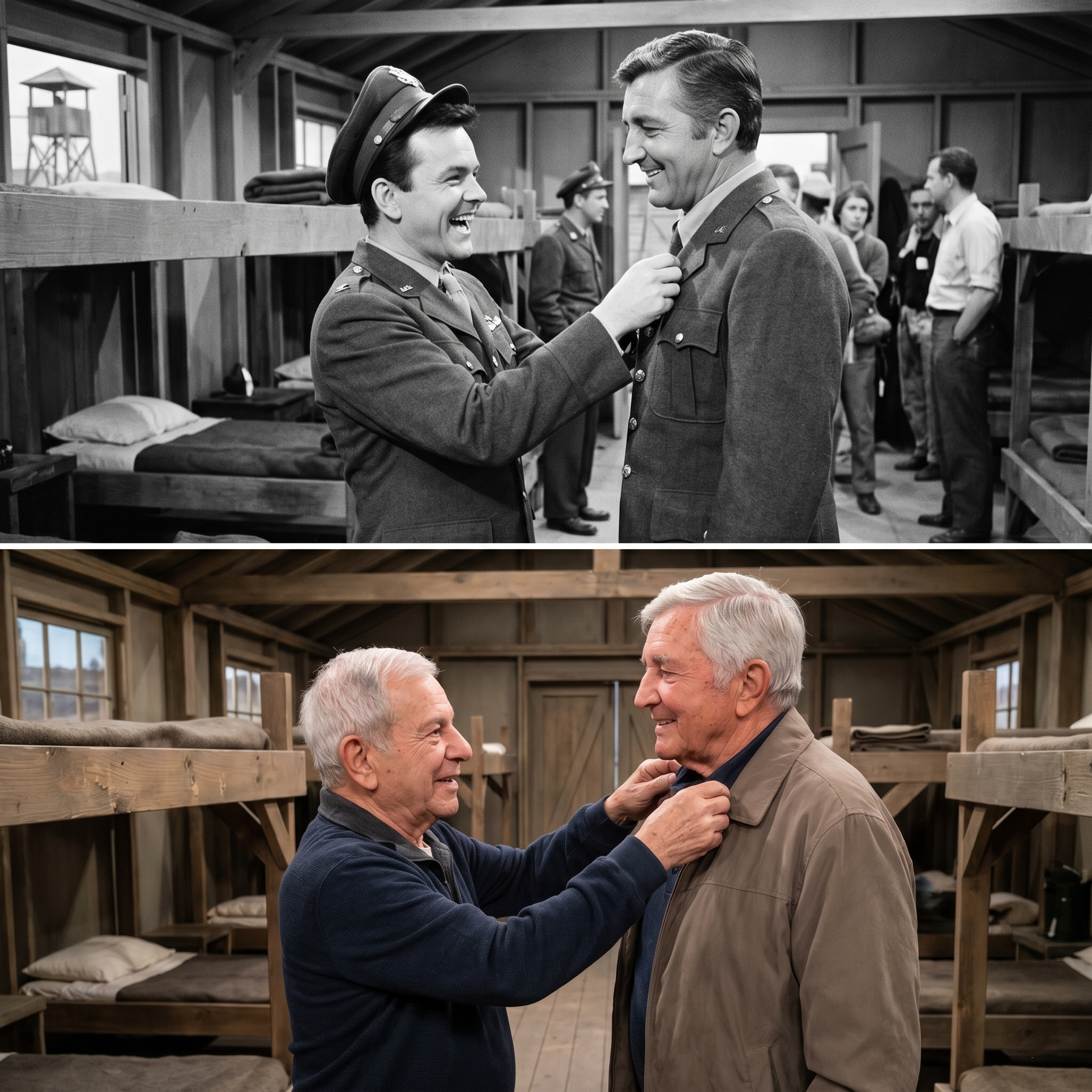 They were back where it all began, decades after the final “cut” had echoed through the artificial woods of Stalag 13.