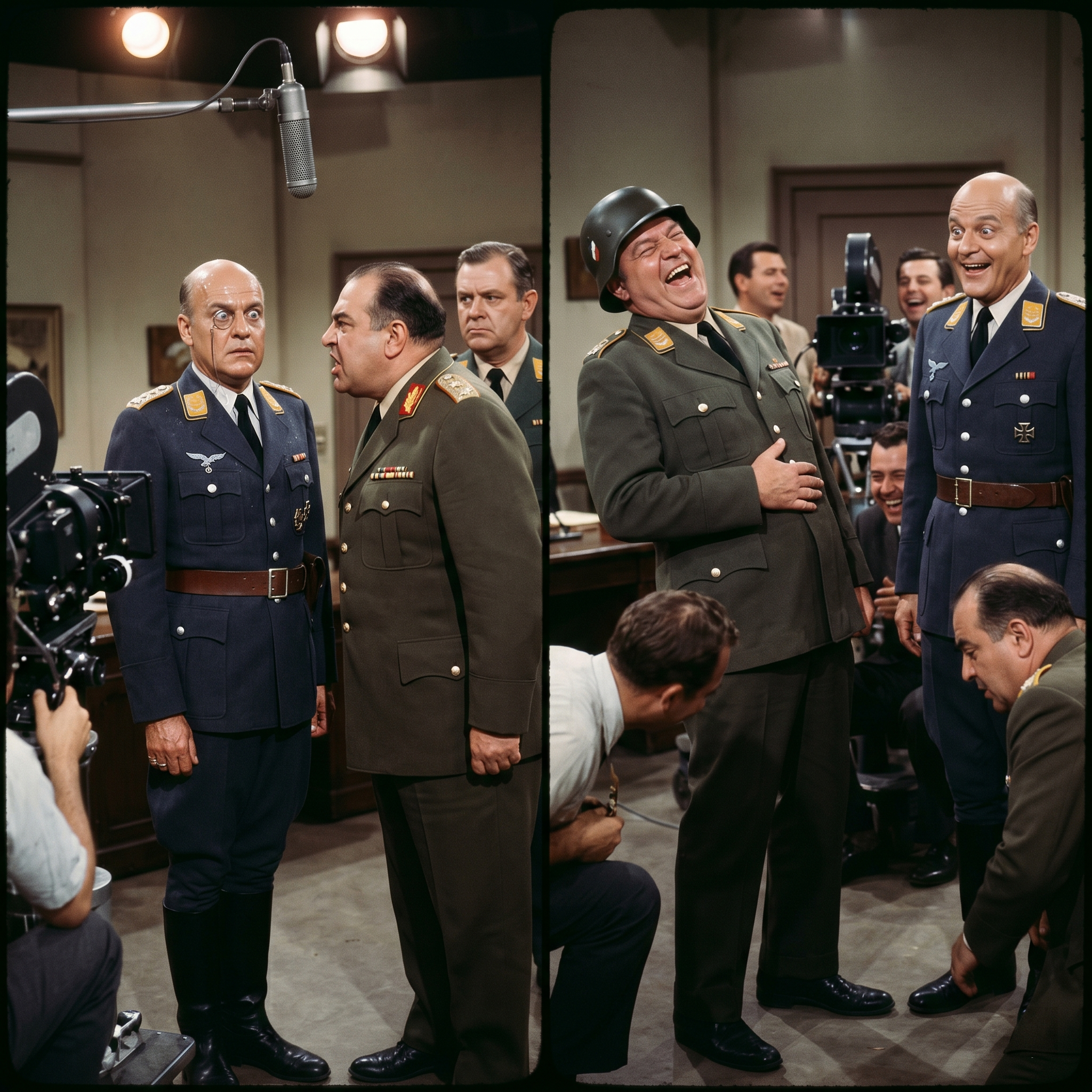 On a hot afternoon in 1968, during the filming of a particularly tense scene involving General Burkhalter, the physics of comedy decided to take over.