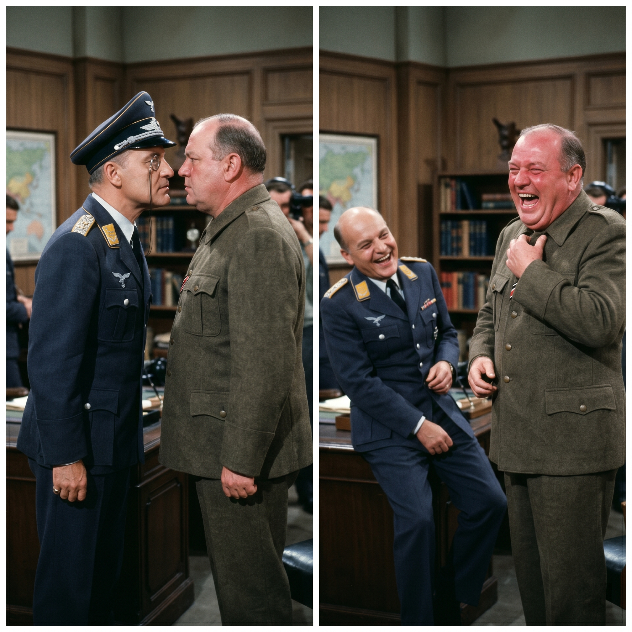 They were filming a scene in Klink’s office. It was one of those high-tension moments where the script required Klink to be at his most menacing. John Banner, the wonderful man who played Schultz, was standing at stiff attention. The director wanted a tight close-up of Klink’s face as he leaned in, mere inches from Schultz’s nose, to deliver a scathing line about the Russian Front. It was the kind of take that required absolute precision. The lighting was perfect, the crew was exhausted and ready for lunch, and the tension in the room was palpable as Werner prepared to scream.