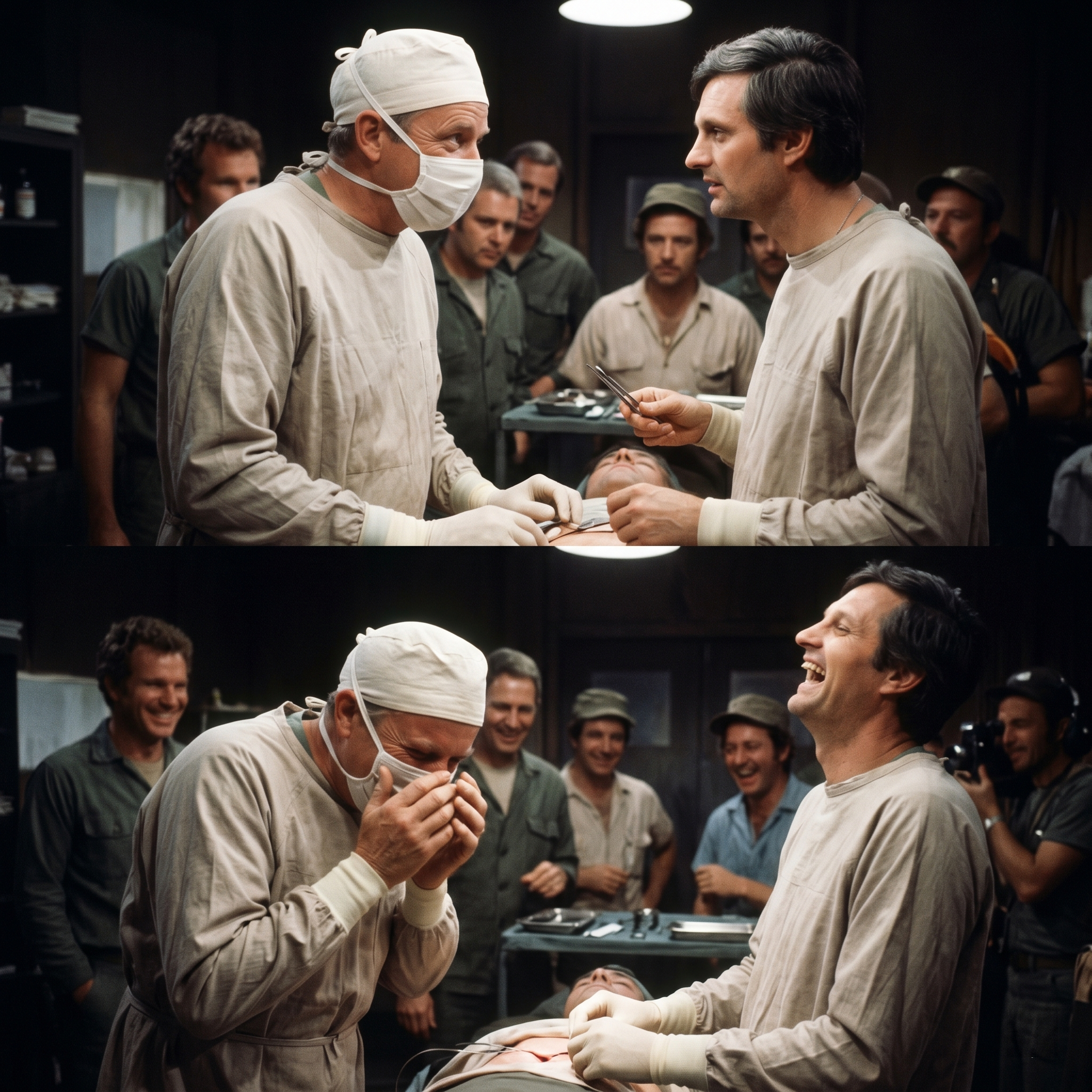 The problem with the OR scenes was that because we had the masks on, we thought we could hide the laughter.