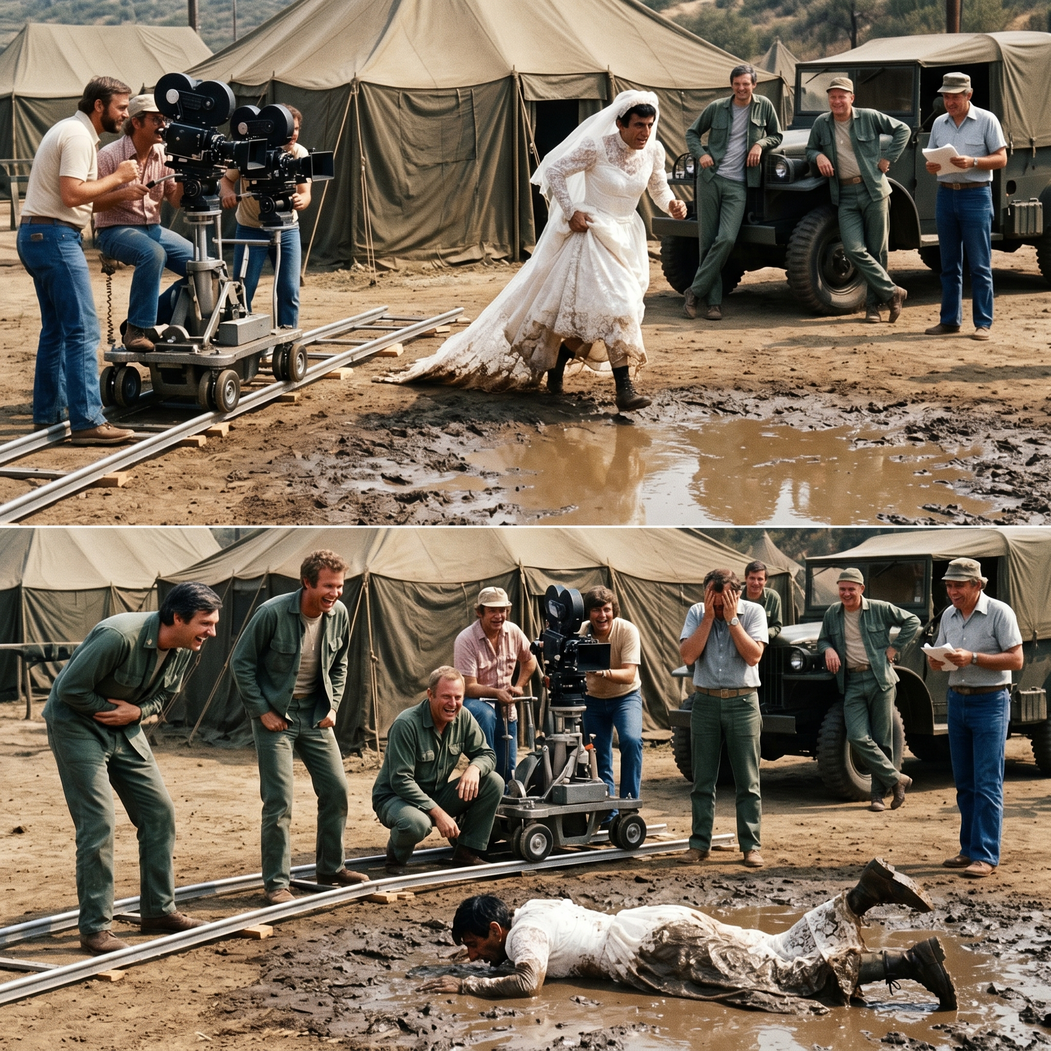 I was standing there, trying to look determined and feminine at the same time, while my castmates—Alan Alda, Wayne Rogers, and McLean Stevenson—were leaning against a truck, just waiting for the disaster to happen.