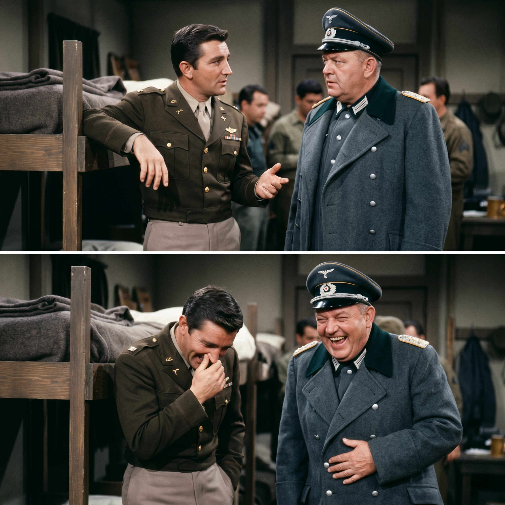 We spent the next twenty minutes trying to reset, but every time I looked at John, or he looked at me, we would start all over again. He would just point at me and whisper ‘strudel-pipe’ and the whole crew would lose it. Even Werner Klemperer, who usually stayed in his Klink persona to keep the discipline on set, had to walk away and stare at a wall for five minutes to compose himself.