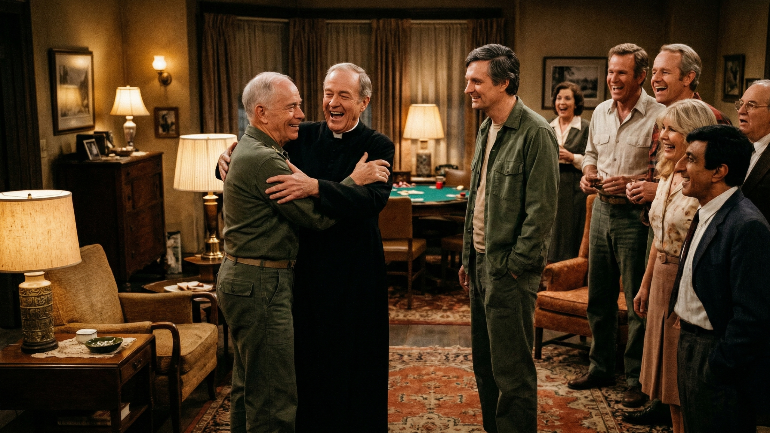 As they all stood in the living room greeting the new arrivals, Hawkeye stood listening to the hum of conversation before nonchalantly nodding his head in Father Mulcahy’s direction. The young priest smiled slightly in acknowledgement and waited until someone spoke. Fortunately, he didn’t have to wait long.