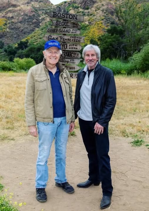Mike Farrell and Jeff Maxwell on the place that used to be MASH set.