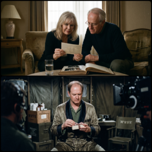 Gary Burghoff sat on the edge of a weathered folding chair, squinting against the harsh, unforgiving California sun. Beside him, Mike Farrell was leaning back, his hands clasped…