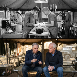 The warehouse was cold, smelling of mothballs, old canvas, and the quiet weight of things left behind. Jamie Farr walked through the rows of crates with Mike Farrell,…